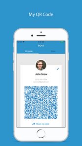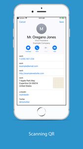 The app will output a digital code so that other user can scan and electronically create a contact record in their iPhone and send to Salesforce contact automatically.