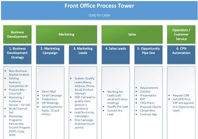 Sales are next in the front office process. Use the leads that marketing has created and convert them into sales. Configure Price Quote software or CPQ, can be used to generate accurate quotes for potential customers in real-time, in order for a salesperson to have a quote readily available to convert a lead.
